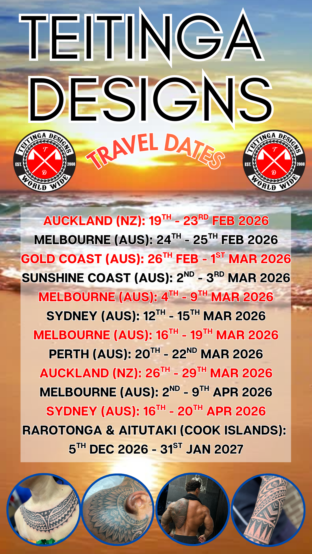 These dates may change due to unforeseen circumstances. We will proactively contact clients whose confirmed appointments are directly affected by any travel changes that occur.
